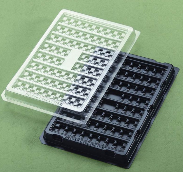 適用范圍:消靜電感應,很多用作電子元器件及商品加工過程的周轉裝車、包裝、存儲及其運送。制造行業中又稱之為導靜電感應拖盤;拖盤的高寬比一般在100mm下列;適用確電子元器件周轉儲放的器皿,依據顧客電子元器件規定,因此對規格也是不一樣規定。
